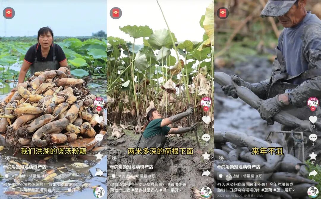 从2019年上传第一条展示“挖藕人日常”的短视频至今,凭借专业和真诚的内容分享,颜姐的账号“洪湖颜姐莲藕特产店”已经收获了24万粉丝、近百万点赞以及日均1万多斤的直播间销量。
